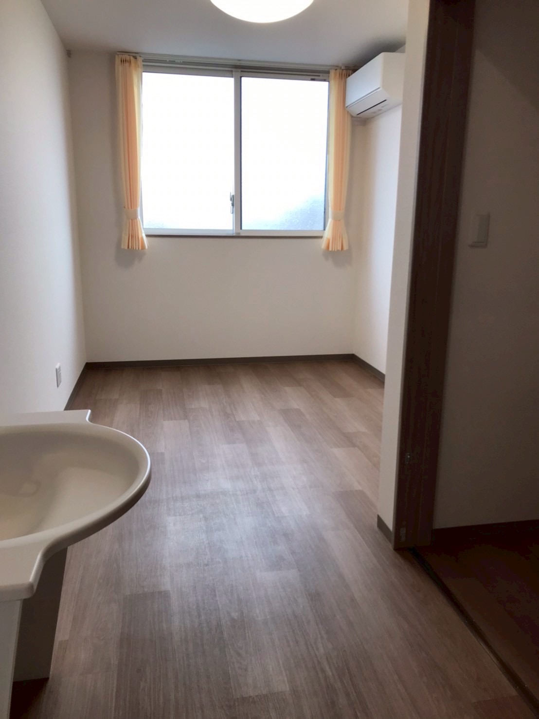 *全40室 13㎡ 各フロアに少し広いお部屋があり、お部屋には備え付けのカーテンがあり、窓はすりガラスになっています